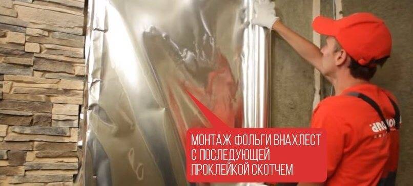 Монтаж производится внахлест с обязательной проклейкой стыков металлизированным скотчем. Использование фольги для утепления абсолютно безопасно для здоровья человека, так как она не выделяет токсичных веществ при нагреве.