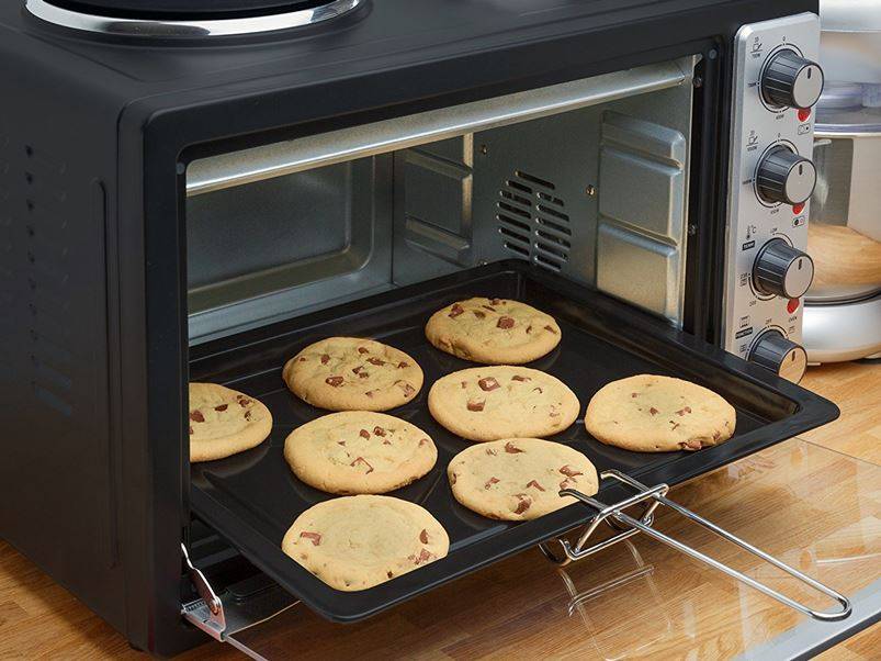 Помимо этого, в топе мини-печек для дома модели с комбинированным режимом нагрева. И верх, и низ печи нагреваются одновременно и равномерно. Благодаря этому продукты хорошо пропекаются со всех сторон.