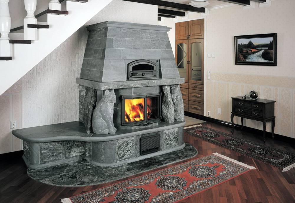 Такие печи на дровах из кирпича способны быстро обогреть помещение, и пригодны для приготовления пищи. После завершения строительства актуально сделать отделку печи натуральным или искусственным камнем, керамической плиткой или произвести штукатурку поверхности.