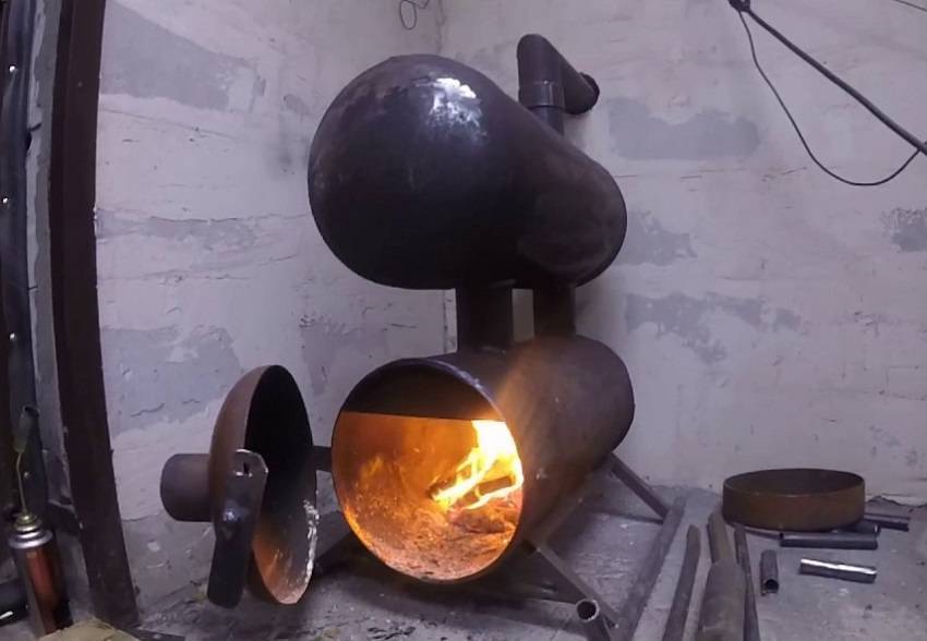 Буржуйку для гаража можно сделать из баллона или трубы с толстой стенкой
