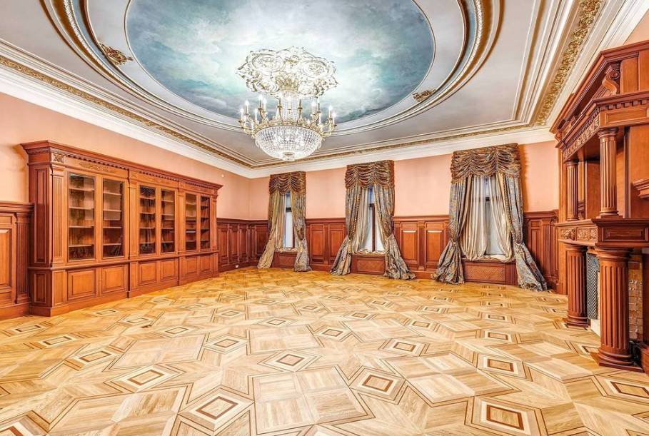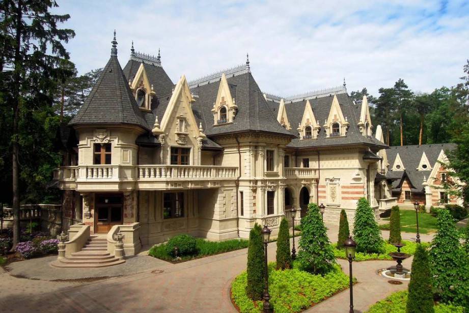 Особняк 2164 кв. расположен на территории 5761 кв. в коттеджном поселке 10 км. от Москвы по минскому шоссе. В доме расположены: холл, гостиная, кухня, парадная столовая, гостиная, совмещенный офис-зимний сад, винный погреб, бильярдная, туалетная комната, гостевая спальня, 4 ванные комнаты, кладовая, тренажерный зал, бассейн, сауна, хаммам, душ, холодная гардеробная, библиотека, домашний кинотеатр, плавательный бассейн, прачечная. Дополнительное здание на участке – гараж на 4 машины с котельной, на 2 этаже – комната для охраны, две спальни, две кухни, 2 ванные комнаты. Площадь застройки 301 кв. Богатый владелец выложит за него 295 млн рублей