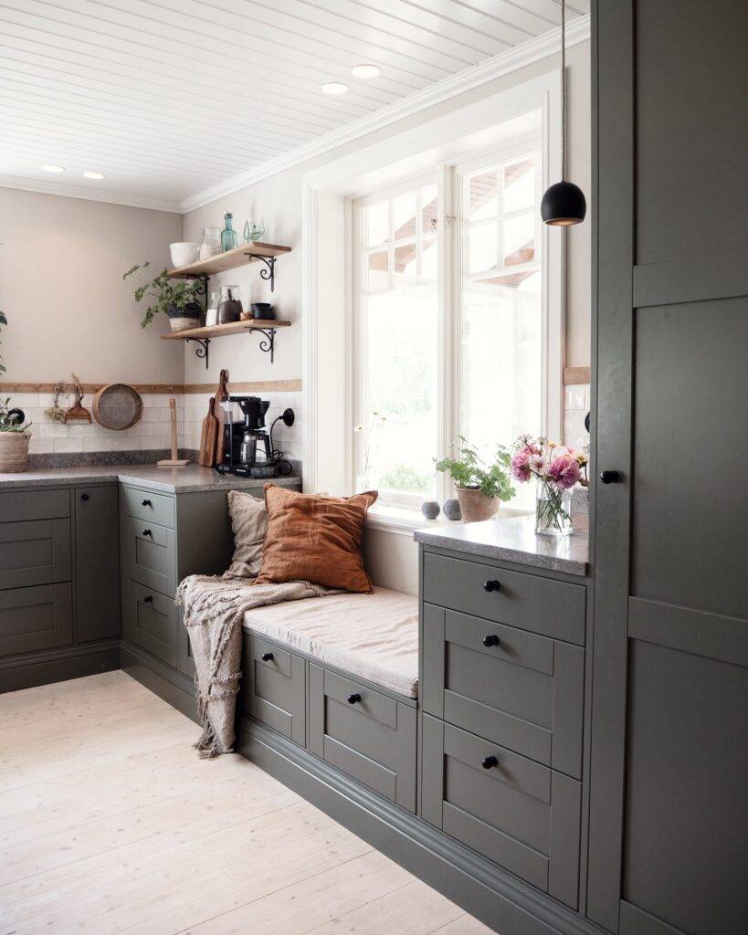Светлая кухня красиво смотрится в интерьере в стиле современной классики или прованс, серая – отличный вариант для скандинавского или лофта.