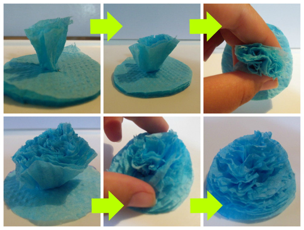 - Аккуратно сминаем салфетку к центру, начиная с верхнего слоя.