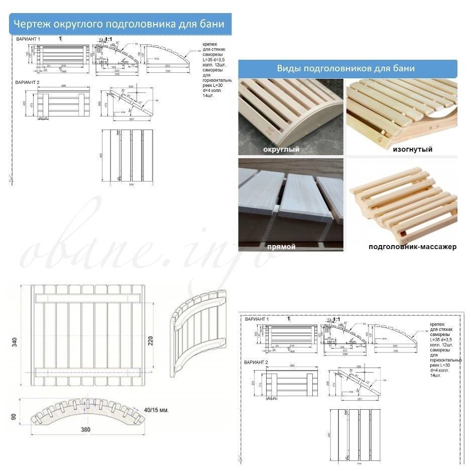 - Чтобы избежать ошибок, при изготовлении изделия нужно использовать чертеж подголовника в баню.