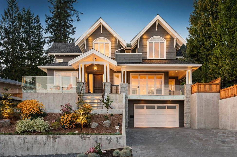 Узнаваемыми чертами любого дизайна в классическом стиле является строгость, изысканная выдержанность, гармоничная умеренность в декоре. Обычно крыльцо в доме, сооружённом в классическом стиле, обустраивается не только навесом, но и дополняется красивыми декоративными колонами, классическими перилами с балясинами мягкой формы.