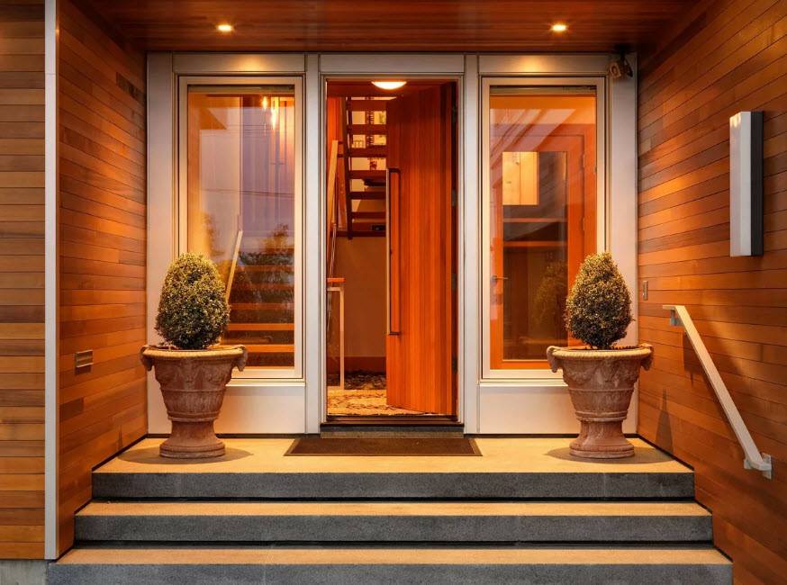 Любой вход в дом – это широчайшее поле для экспериментов в декорировании, будь то три ступеньки или полноценная широкая лестница. Как оформить крыльцо в разных стилевых решениях – рассмотрим в данном разделе.