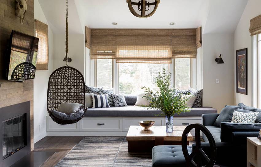 - Отличное место для отдыха. Вечерами, укутавшись в плед, можно хорошо расслабиться за чашкой чая. Кроме этого, дополнив конструкцию небольшим столиком с ноутбуком, можно уединиться и поработать.