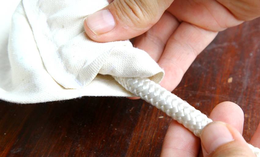 - оформляются веревочные карманы, и продевается веревка с каждой стороны;