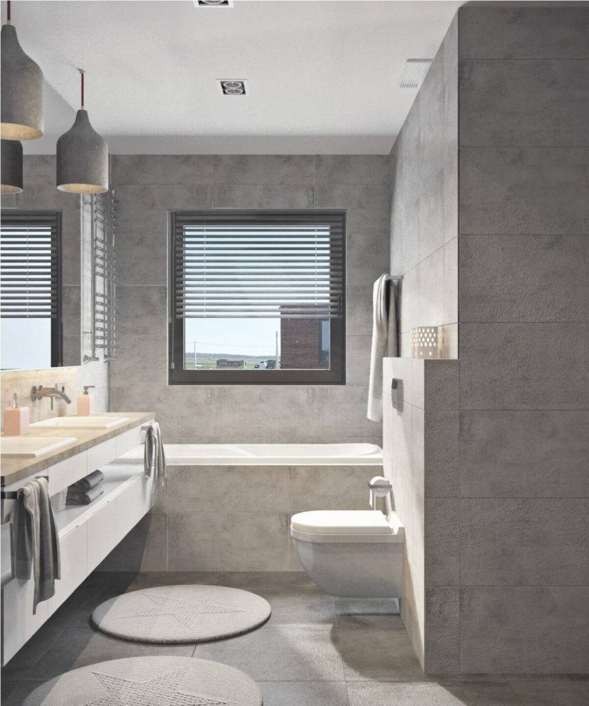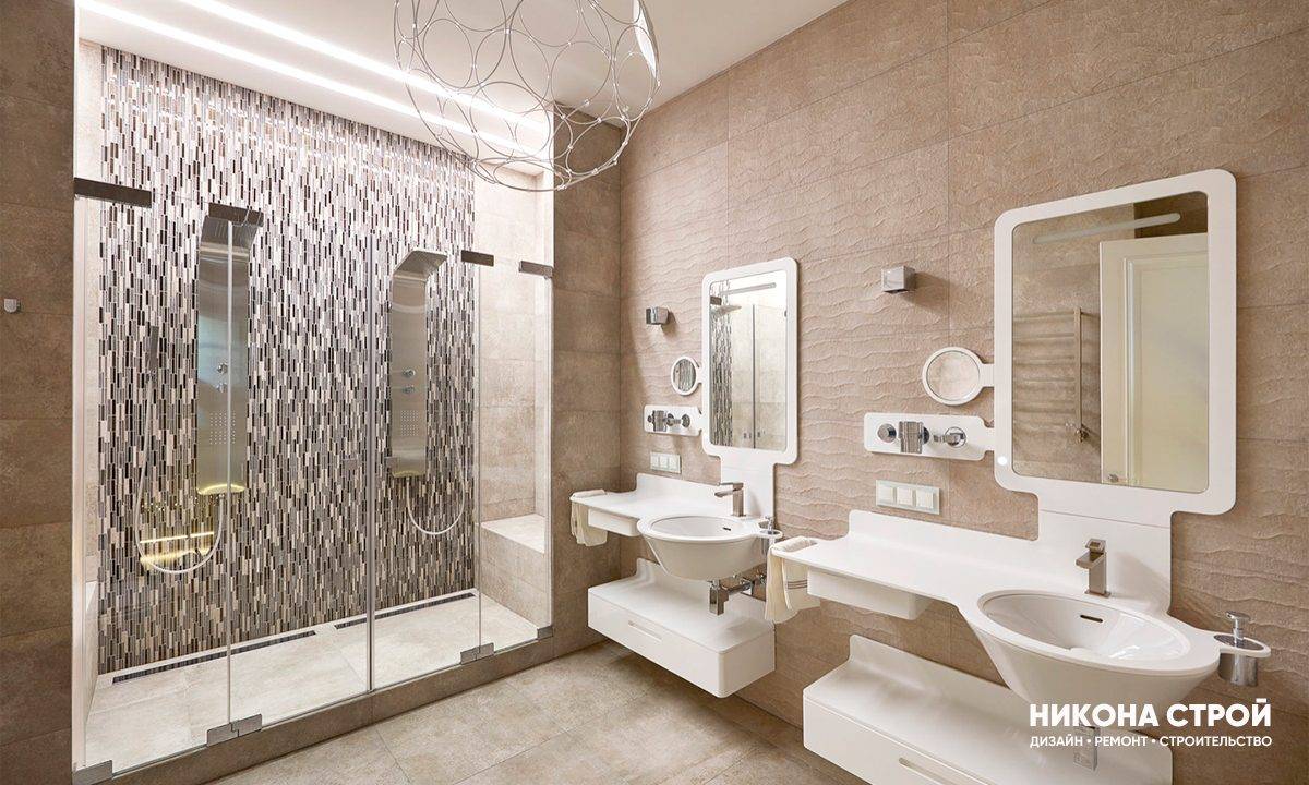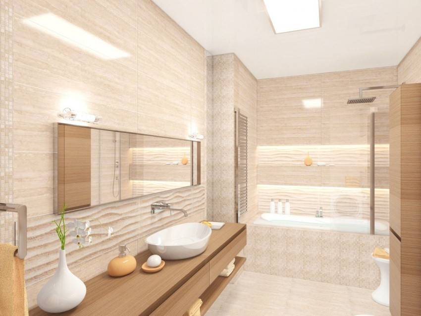 Если же принципиально хочется высветлить комнату, то чисто белые поверхности можно разбавить оттенками серого, либо сочетать плитку с матовым и глянцевым покрытием. При наличии дверей со стеклянными рифлеными вставками можно добиться очень красивого эффекта при попадании на плитку дневного света. Также в современном дизайне активно используется структурное окрашивание, благодаря которому стены приобретают интересную текстуру.