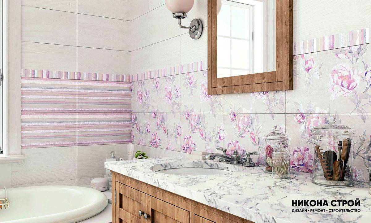 Не теряет актуальности и принцип контрастности. Комбинируя светлые и темные цвета можно добиться множества прекрасных сочетаний, главное, избегать излишней пестроты. Например, подчеркнуть оригинальность стиля кантри или прованса может плитка с цветами, в том числе крупными, но ее количество в общей квадратуре должно быть четко дозированным. Преобладающими в цветовой палитре должны быть максимум два тона, остальные играть второстепенную роль и быть задействованными лишь точечно.