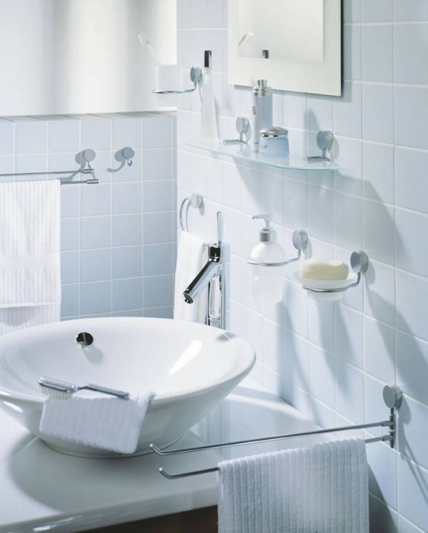 В зоне умывальника может быть сосредоточено наибольшее количество различных аксессуаров.