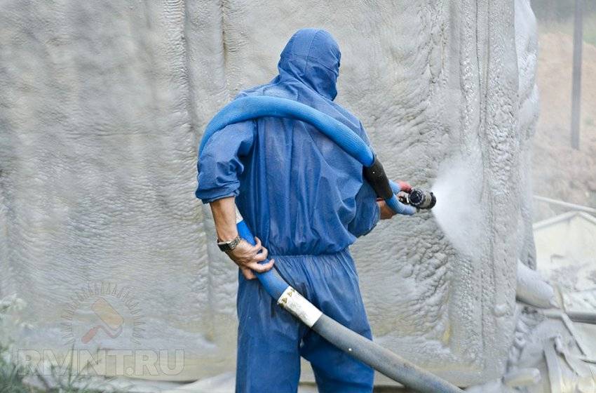 Для начала стены фундамента очищаются и обеспыливаются.После чего производится напыление жесткого закрыто ячеистого пенополиуретана (ППУ)