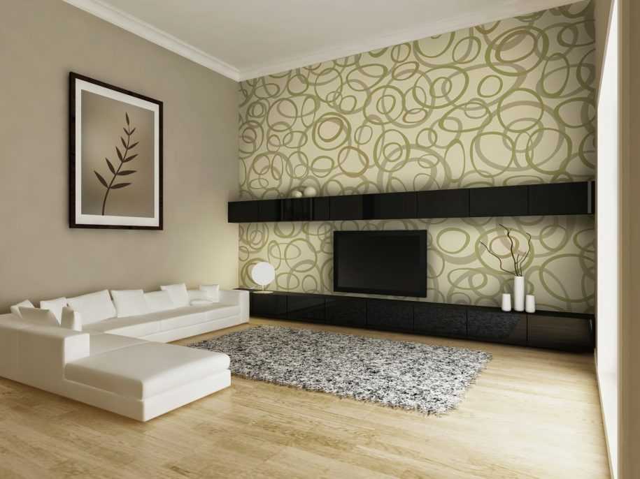 Гостиная комната с обоями с едва заметной структурой (подходят под покраску)Источник ucrazy.ru