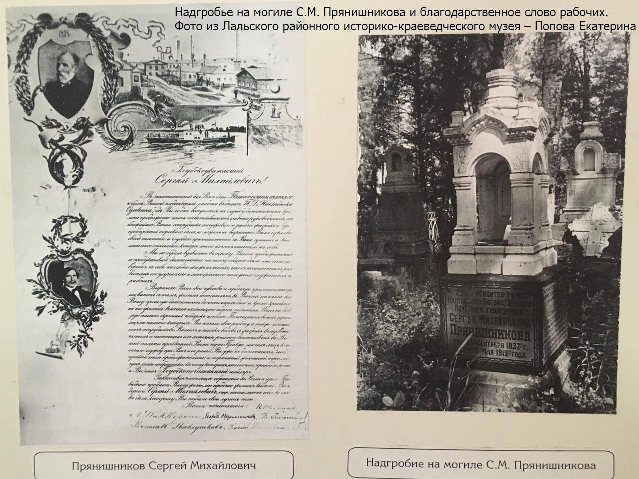 Сергей Михайлович Прянишников занимался только бумажным делом и посвятил ему всю свою жизнь. В течение своей долгой трудовой жизни многое сделал для усовершенствования и увеличения фабрики, поражал своей энергией, трудолюбием и знанием всех мелочей фабричной работы!