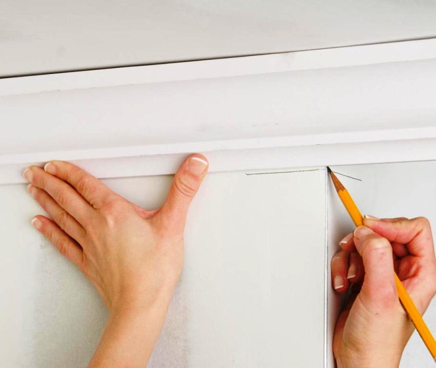 Перед тем как клеить багет, нужно отметить это место карандашом