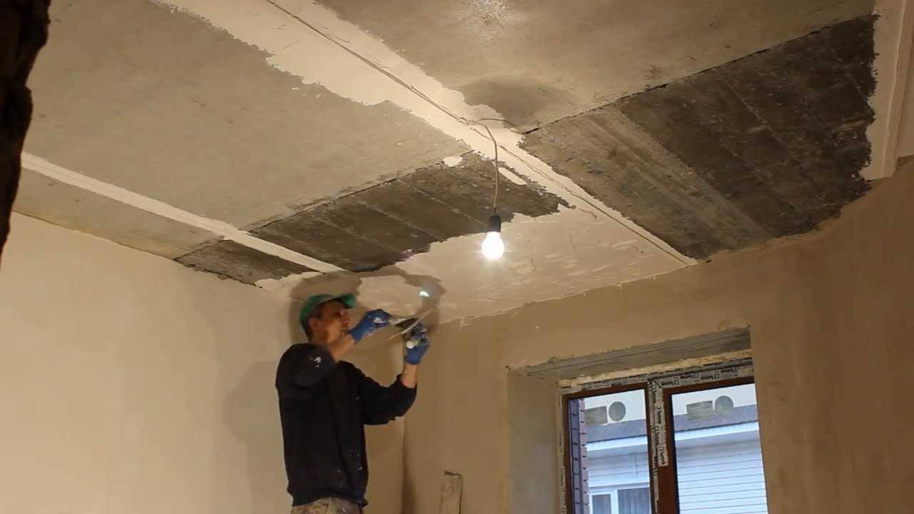 Предупредить такие моменты можно очень просто — почистить потолок металлической щеткой, а затем протереть влажной тряпкой. Желательно мелкие трещины и сколы зашпатлевать.