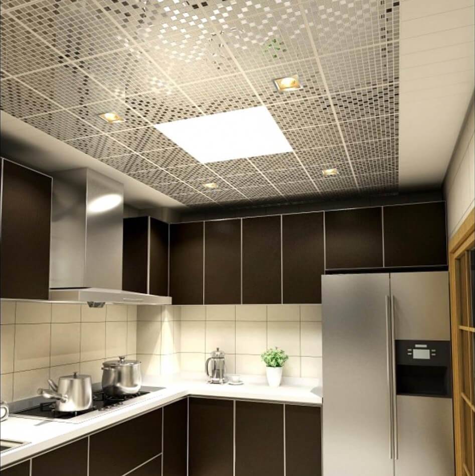 кассетный потолок — подходит для современного интерьера, представляет собой небольшие модули, которые фиксируются к каркасу в определенной последовательности. Каждая из панелей может отличаться цветовой гаммой, текстурой, за счет чего можно подобрать поверхность под любой стиль. Главный минус — стоимость изделий;