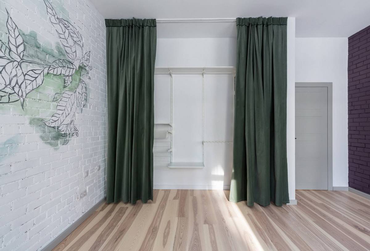 Мебель, двери или аксессуары желательно «красить» блестяще. В этом случае лучше выбирать закрытые фасады шкафов-купе, чтобы одежда не «скупилась» с основными оттенками.