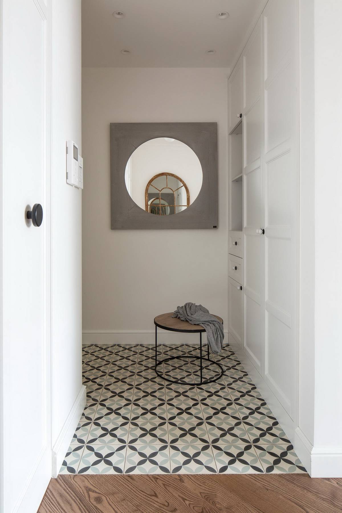 Лучшее что можно сделать в прихожей это керамогранит: он прочен и устойчив к влаге, но грязь, которая скапливается в швах, может испортить внешний вид пола. Линолеум не обладает этими недостатками, но следует выбирать покрытие с качественной имитацией фактуры.