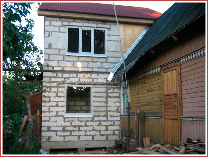 - выполненная своими руками достройка из пеноблоков добавить основному зданию вес, поэтому следует все тщательно просчитать, чтобы во время эксплуатации дом не дал трещин и не «уплыл» под воздействием массы блоков.