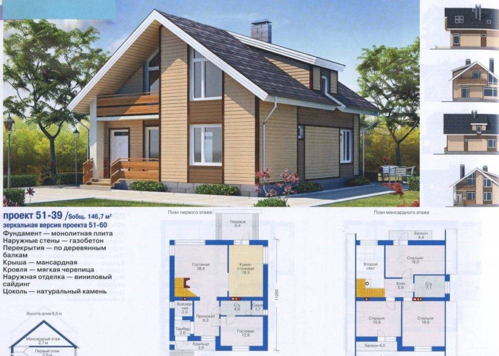 Все типовые проекты коттеджей и дачных дачный домиков из пеноблоков можно адаптировать под регион строительства и пожелания заказчиков. В проектах всегда приводится инструкция последовательности монтажа и расчет того, сколько материалов необходимо для постройки.