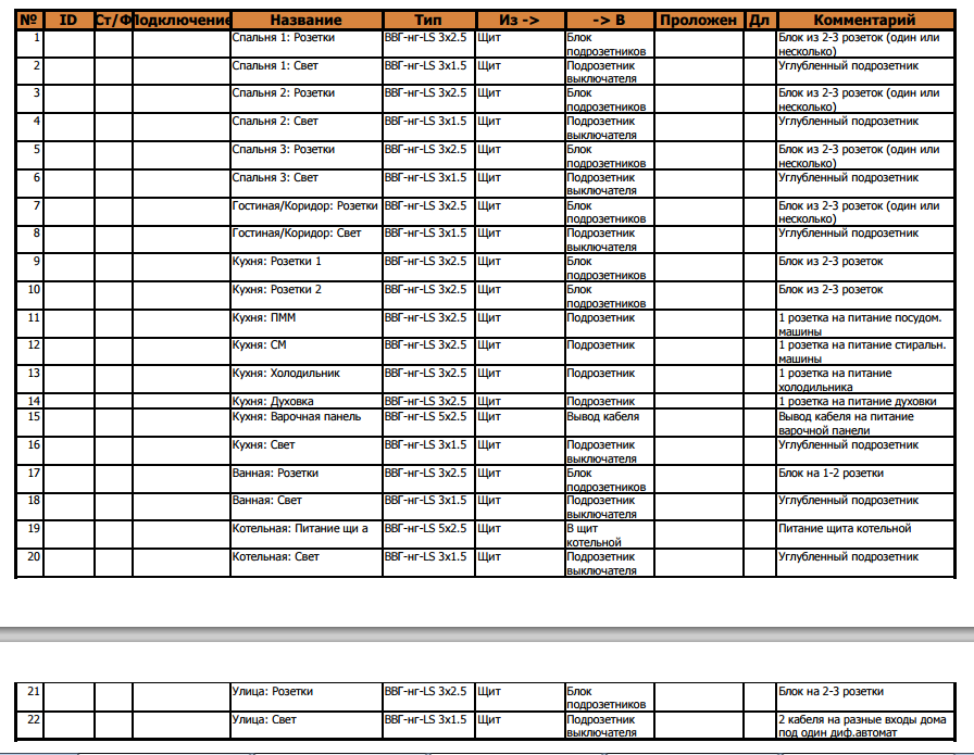 Сначала определяемся с планировкой, потом продумываем в нашей планировке все будущие потребители (бытовой техникой, приборами и т.п.). Особенно точно нужно определиться с «особенными» потребителями (плита, холодильник, варочная поверхность, котел,