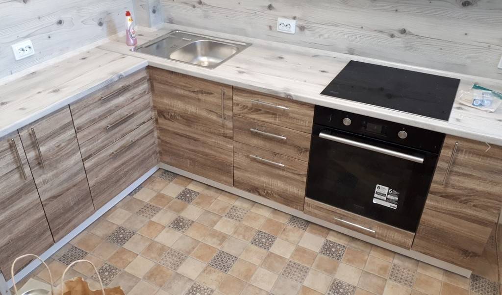 А вот с уровнем столешницы возможно поэкспериментировать. Её высота от пола подбирается под Ваш рост. Так, чтобы при приготовлении пищи руки были слегка согнуты в локтях: