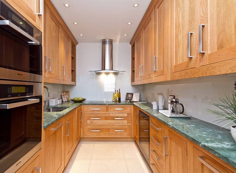 Маленькие узкие кухни являются самым неудобным для функционального обустройства вариантом. В этом случае возможна только линейная расстановка кухонного оборудования вдоль одной из длинных стен.