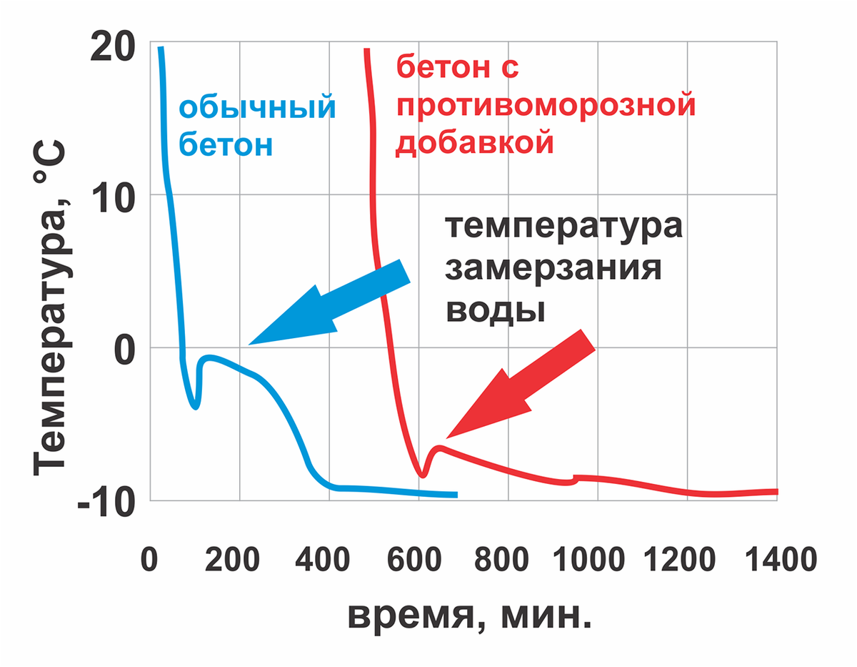 - жидкость, присутствующая в смеси, замерзает при более низких температурах, чем обычно, позволяя раствору схватится;