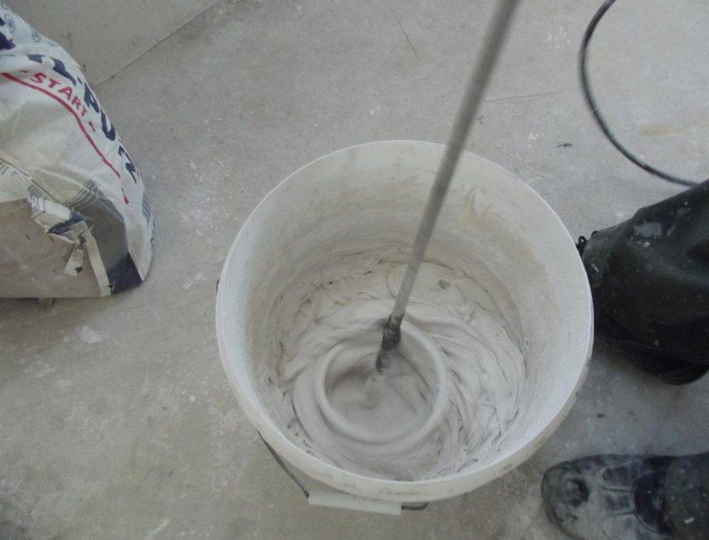 - Для замеса лучше использовать строительный миксер – тогда масса получится более однородной, чем при ручном замешивании.