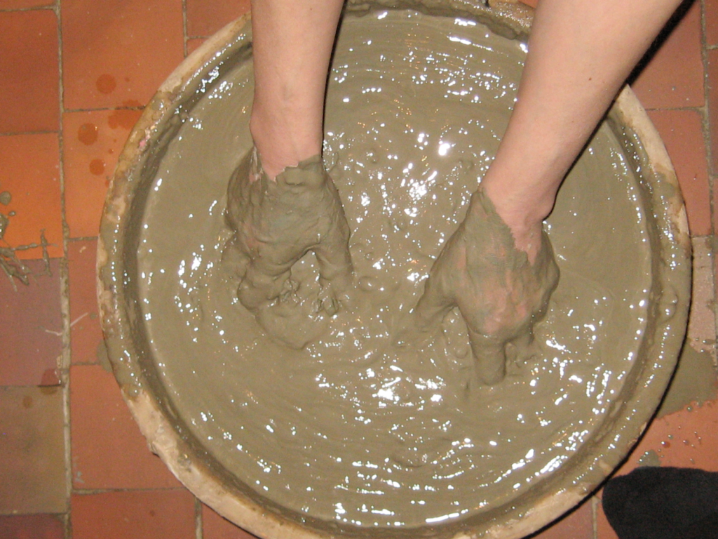 - В специальную емкость выкладывается необходимое количество предварительно замоченной глины.