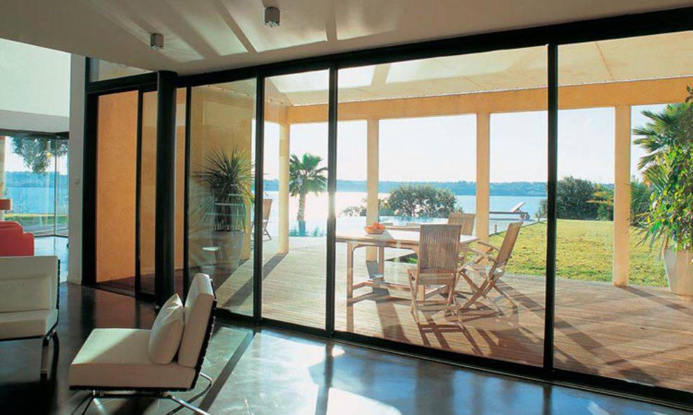 - Возможность остекления больших проемов. Легкость алюминия позволяет остеклять очень протяженные окна и двери. При этом светопроницаемость и утонченность систем сохраняется.