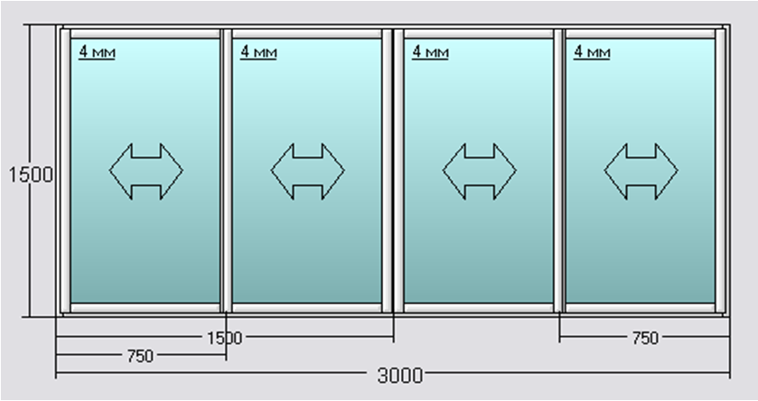 Кроме того, в отличие от вышеописанных разновидностей, безрамная система предполагает использование более толстого стекла 6–12 мм. Конструкция работает наподобие шкафа-купе, окна открываются путём сдвигания сегментов на роликах по полозьям нижней части профиля в одну сторону.