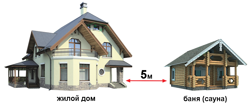 - расстояние от бани до границ соседних участков, должно быть не менее 3 м.;