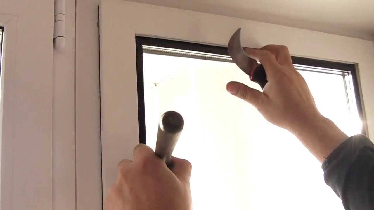 Чтобы не повредить стеклопакет, необходимо следить за тем, чтобы края рихтовочных пластин не упирались во внутреннюю часть стекла. Снять штапик поможет широкая стамеска. Для этого нужно прислонить устройство в месте стыка штапика с профилем и ловким ударом отсоединить штапик.