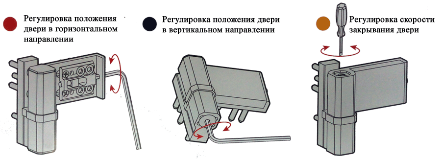 Регулировка с помощью горизонтального винта нижней петли