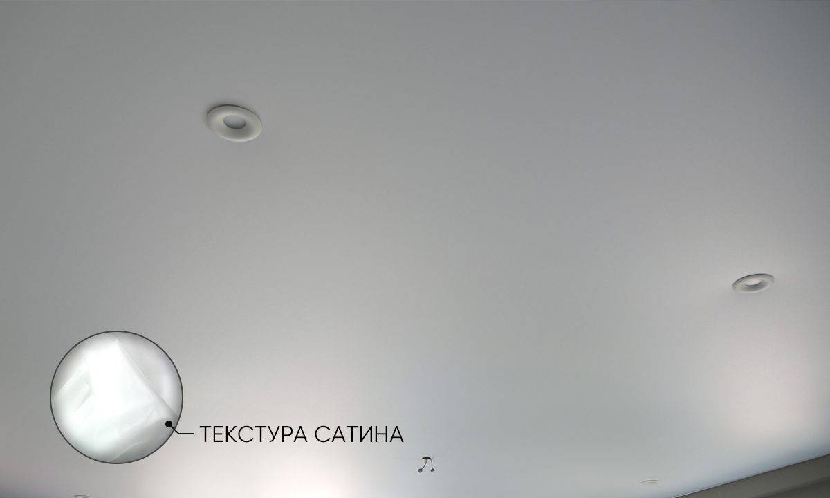 Сатиновые полотнища обладают особо привлекательной фактурой, аналогичной поверхности снежного покрова. Лучи света, попадающие на мелкие крупинки, создают массу переливов, которые придают помещению роскошный вид.