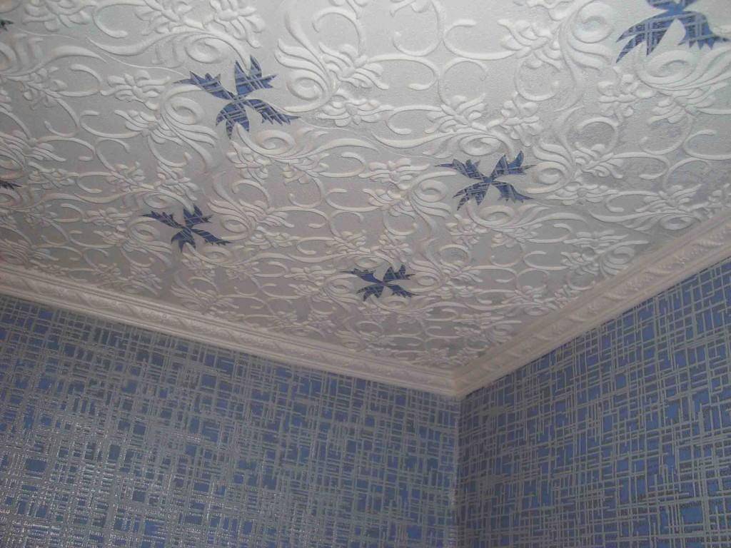 Отделка потолков обоями позволит быстро и недорого обновить интерьер.