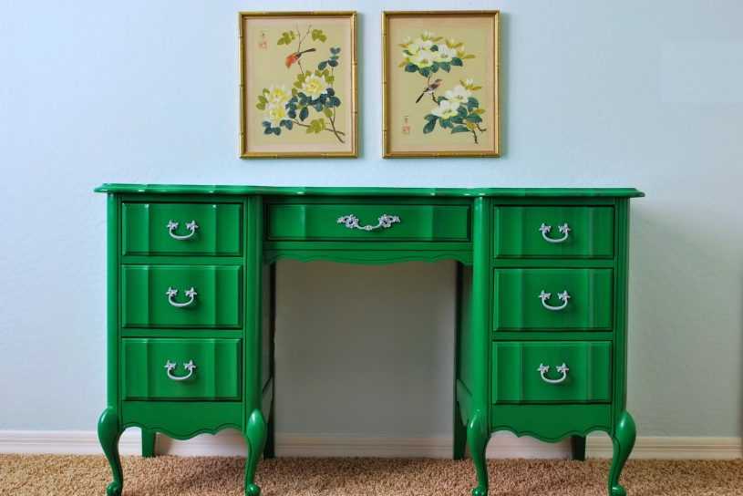 Рассматривая фото мебели после реставрации, можно отметить, что чаще всего ее перекрашивают. Для этого используют эмаль или акриловые краски на водной основе. Перед окрашиванием поверхность должна быть абсолютно гладкой. Нежелательно применять этот способ в отношении ценных пород древесины. Древесная фактура всегда ценилась больше.