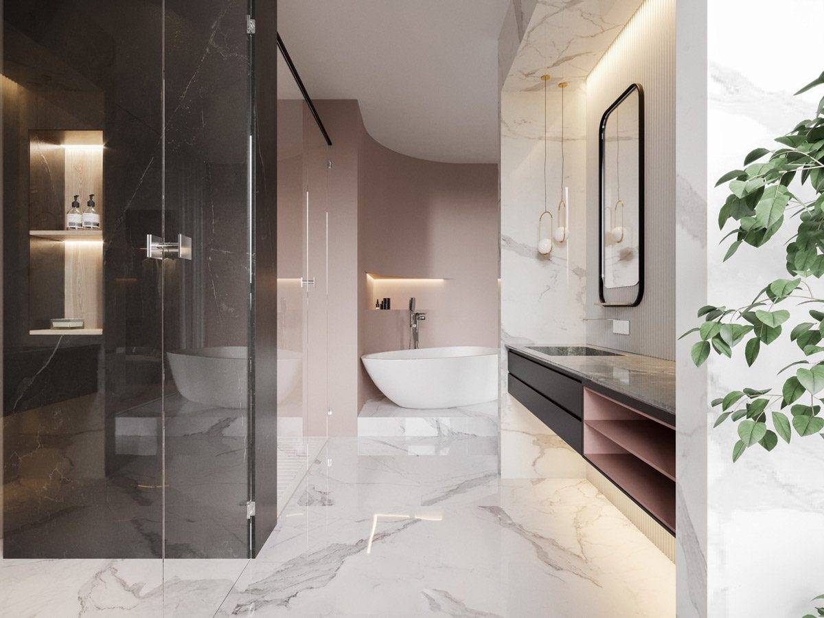 Хотя минималистичные белые ванные комнаты были самой популярной тенденцией в последние годы, дизайн с нейтральными, универсальными цветами, такими как пыльно-розовый, все еще используется. Можно оставить классическую белую основу и добавить только светло-розовые аксессуары. Таким образом, вы можете легко изменить дизайн в любой момент, если он вам надоест.