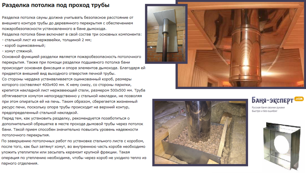 В парной необходимо выложить отверстие для трубы. Оно оборудуется коробом из тонкой листовой нержавеющей стали, который заполняется керамзитом.