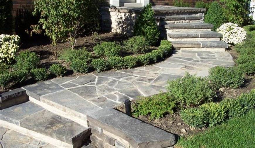Другим требованием является соответствие дизайна дорожек общей концепции обустройства территории. Например, если дом и прочие строения облицованы натуральным камнем, то и тропинки желательно сделать им же.