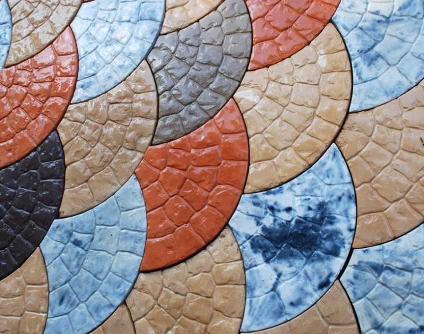Данные изделия отличаются довольно сложной раскладкой, при которой нужно учитывать цветовую гамму и направление отдельного модуля. Необычно выложенные фигурные элементы в виде звезд, листьев, цветов и других фигур, придадут ландшафту особой изюминки.