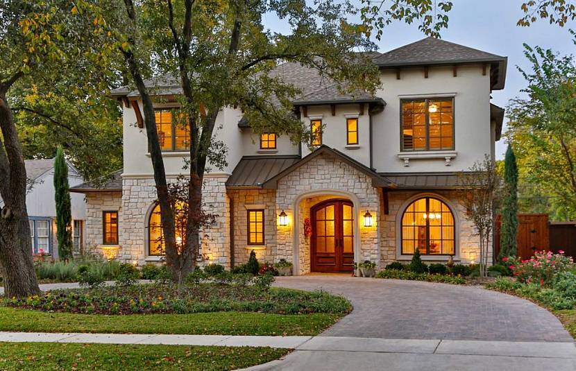 Большой красивый дом на фото ниже отличный образец хорошего вкуса и грамотного дизайна. Арочные окна на первом этаже не диссонируют с прямоугольными проемами наверху, а дополняют их, поскольку выполнены в одной стилистике.