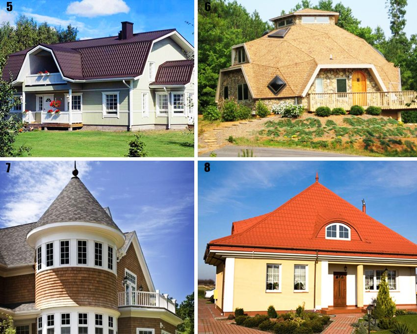 Виды крыш: 5 – ломаная; 6 – купольная; 7 – конусная; 8 – шатровая
