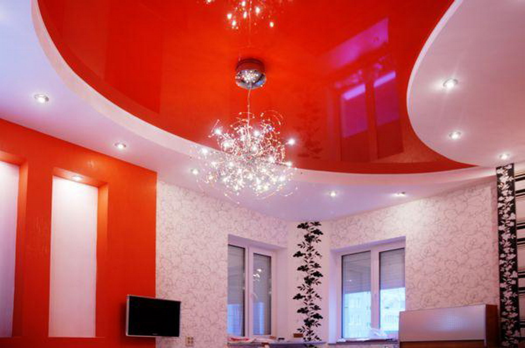 Поскольку материалы на основе ПВХ хорошо тянутся, с их помощью можно сконструировать потолки любой формы, с разным количеством уровней и всевозможных комбинаций расцветки.