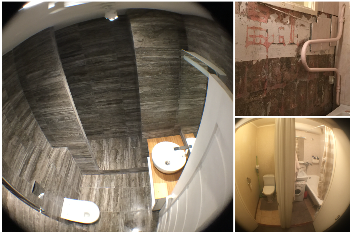- Особое неудобство может доставить совмещённый санузел, особенно, когда сантехника не менялась со времени сдачи здания, то есть примерно с середины прошлого века. А это демонтаж и новая установка, поскольку стандарты оборудования уже давно совсем другие.