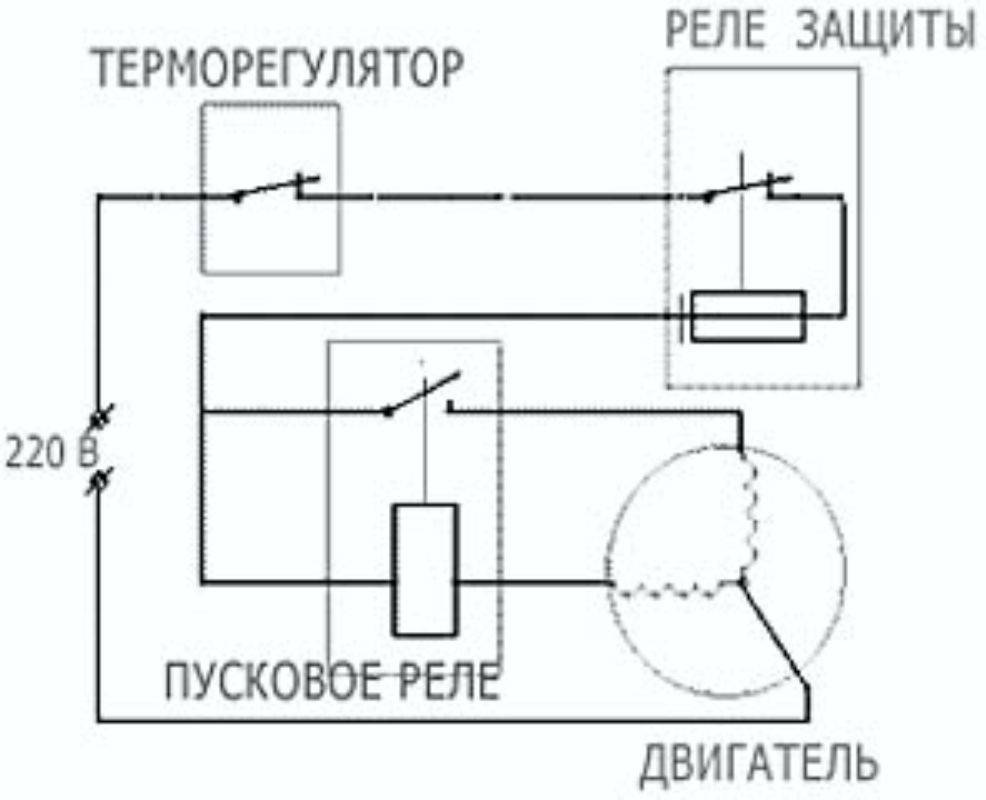 Теперь перейдем непосредственно к схеме подключения компрессора холодильника.