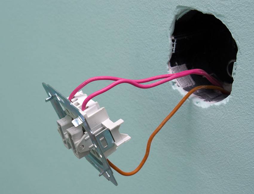- Прежде всего необходимо удостовериться, какой провод в коробке является фазой, обычно он красного цвета.