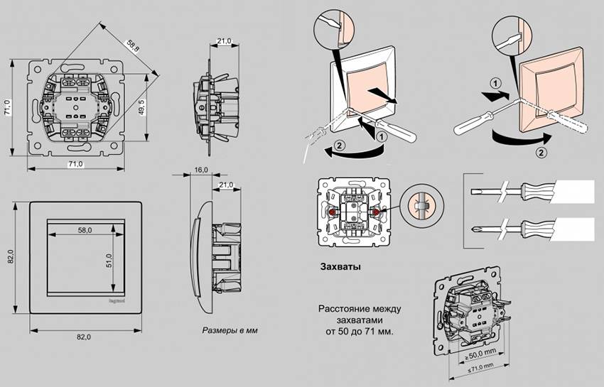 Причем какой из них куда, не имеет существенной разницы. Выключатель собирается и закрепляется в подрозетнике.